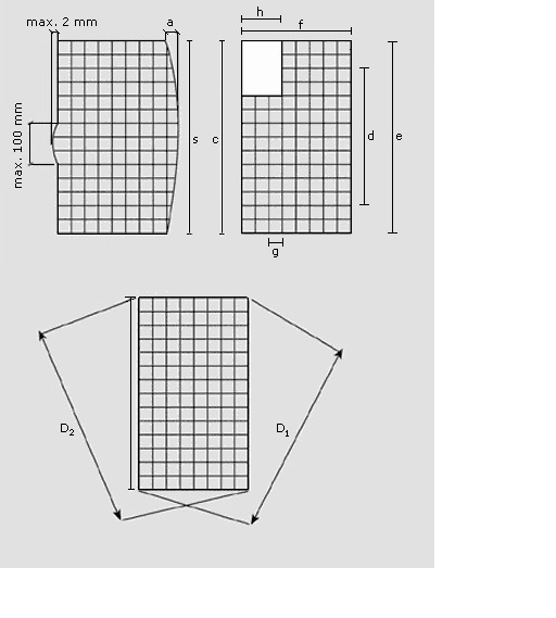 Deze toleranties zijn geldig voor de rooster die voldoen aan de volgende maten:
